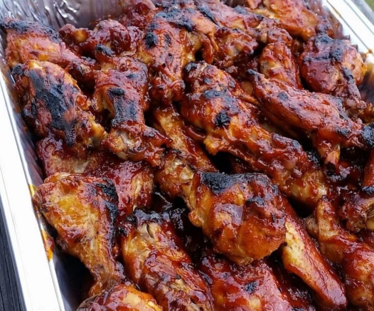 - Remove wings from Crockpot onto a baking pan covered with foil.