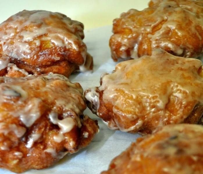 Using a pastry brush, brush this glaze over the entire top of the fritter. Let glaze harden slightly, turn it over and “paint” the glaze on the bottom. Place glazed fritters on wire rack; let glaze harden, then serve.