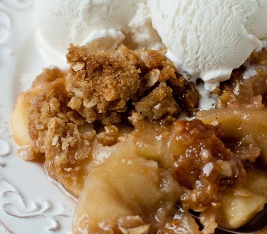 4. Bake for 35 to 40 minutes or until the topping is crisp and golden and the inside is warm and bubbly.