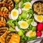 Grate in the gruyere, then, using the back of a spoon, make 2 hollows in the vegetables. Crack the eggs into the hollows. Season with salt and the chilli flakes. Return to the oven and cook for 6-8 minutes until the eggs are just set.