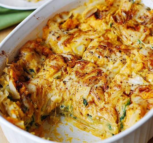 - Spread another layer (1/3) of butternut squash mixture, then sprinkle lightly with Mozzarella cheese. Top with cooked noodles.