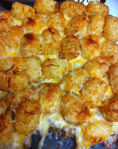 Easy, peasy and cheesy! I make this casserole on extra as everybody loves tater tots with meat and cheese. Give it a shot, you will love it!