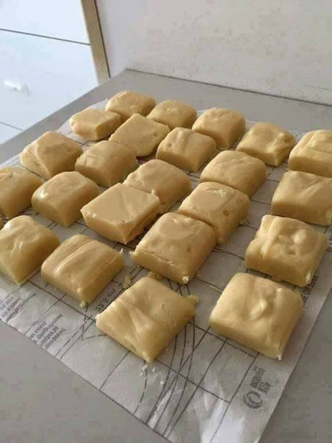Grease and line a 20cm square baking tin. Heat together the milk, condensed milk, butter and sugar over a low heat in a non-stick saucepan for 10-15 minutes, scraping the bottom of the pan often, until the mixture forms a soft ball when dropped into a glass of cold water. Once the mixture reaches this stage, remove it from the heat and beat it for ten minutes until it becomes thick and grainy. Pour it into the baking tin and leave it to cool completely before serving. Once the fudge is cooled, either cut it into small squares or break it apart with your hands. This recipe will yield around 20 portions of fudge.