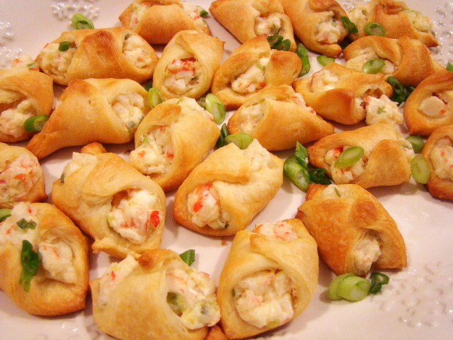 Overlap opposite corners of the crescent roll squares over the cheese and crab mixture and pinch closed.