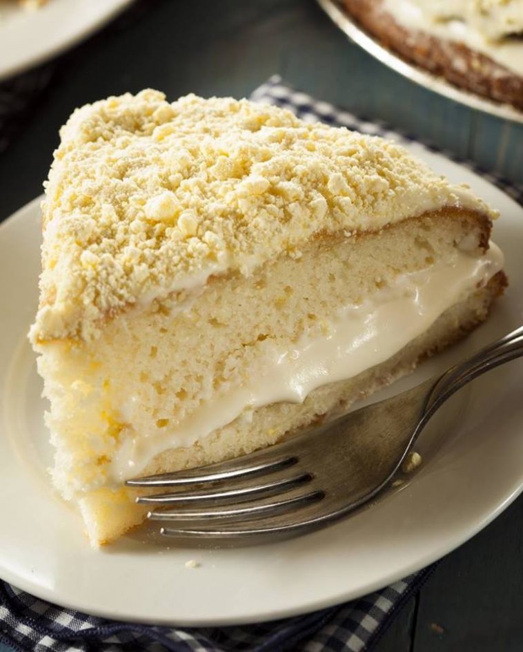 I was expecting a few friends over one morning for a little coffee and conversation. I wanted to serve a coffee cake, but also something light and creamy, and that’s when I stumbled upon this perfect crumble cake that would do just the trick. It’s impossible to go wrong with a trifecta of sweetened cream cheese, crumbly topping, and moist, chewy cake. It’s easy to make the cake from scratch, but we chose to take a little shortcut and use a pre-made cake mix.