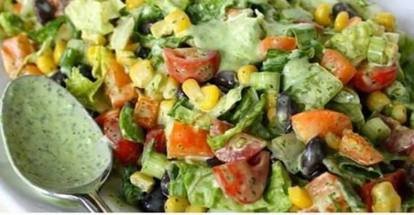 This salad we have located and are sharing from the Change You Health For Life, Facebook page looked so colorful and full of appeal that we wanted to share the post and recipe. Romain lettuce, black beans, bell peppers, tomatoes, corn, and onions are a great mix of textures and flavors. The dressing that goes on the salad sounds like a perfect combination of ingredients that will make this a very satisfying meal.