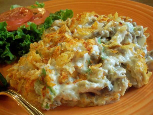 Bake uncovered at 350ºF. for about 30 minutes or until heated through and chips are lighty brown.