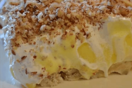3rd layer – Lemon pudding (made to box directions) spread evenly over 2nd layer.