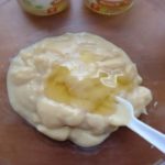 First, peel the bananas and puree them with a wooden fork or spoon. Do not use metal cutlery, since the bananas tend to darken when in contact with metal.