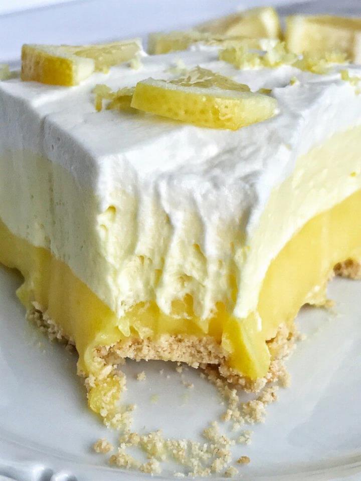 Add half of the freshly whipped cream into the remaining lemon pudding mix and whisk together until combined. Spread over the lemon pudding in the pie crust.