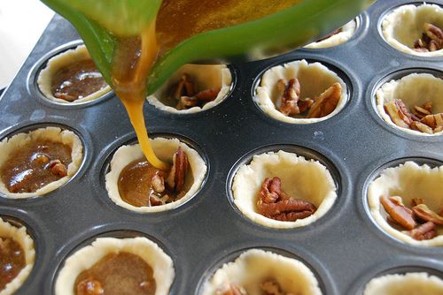 – THESE are a little too sweet. they puffed up when i pulled them out of the oven but deflated after a minute. like any other tart recipe, i made a variety – pecans, walnuts with choco chips, raisins, and cereal. what i do is i just add a tablespoon or more of the choices in the molded crust, mix the filling then pour it over the “variety” and crust. i didn’t double the recipe and made 24 regular cupcake sizes. (by the way, i don’t roll the dough. i divide it by 2. take one and divide it by 4, then divide those by 3s. repeat for the other one, and ask help from my 5 year old daughter to mold the doughs :D).