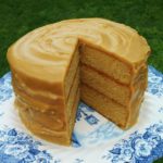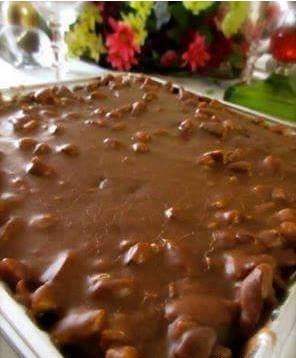 While cake is baking, make the icing. Chop pecans finely. Melt butter in a saucepan. Add cocoa, stir to combine, then turn off heat. Add the milk, vanilla, and powdered sugar. Stir together. Add the pecans, stir together, and pour over warm cake.