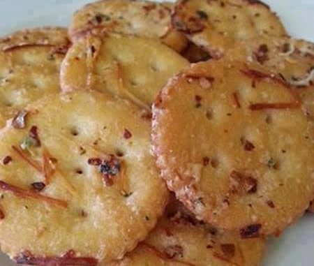 toss box of Ritz crackers with all 5 ingredients Bake in 300 degree oven for 15 minutes