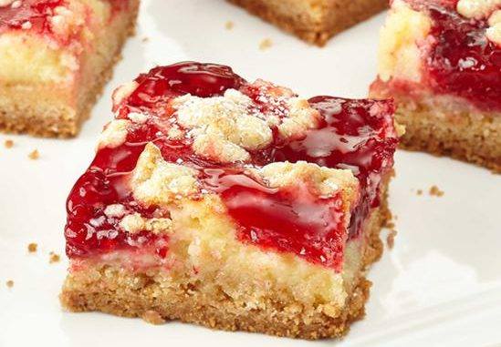 Beat cream cheese with electric mixer in large bowl. Beat in remaining eggs and 2-½ cups confectioner’s sugar. Pour over cake mixture in pan. Spread strawberry pie filling on top and sprinkle with reserved cake mixture.