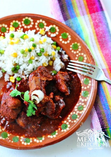 6. To make the sauce, transfer peppers, sesame seeds, garlic and onion in a blender or food processor (discard their cooking water), and add 3 cups of the meat broth previously strained. Blend until you have a fine and smooth sauce.