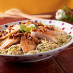 Meanwhile, for the pecan topping, in a small sauce pan combine molasses, vegan butter, and brown sugar. Cook and stir over low flame until sugar is dissolved and butter is melted. Stir in pecans.