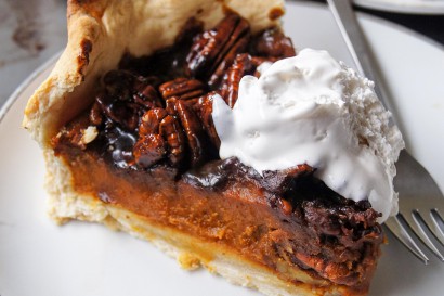 After the timer for the pie goes off, spoon pecan mixture as a layer on top of the pie, and bake an additional 10 minutes. Let cool completely then chill for 2 hours (best if refrigerated overnight).