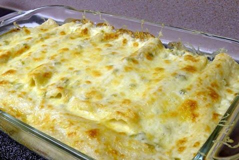 Pour sauce over enchiladas and top with remaining cheese. Bake 20-25 minutes and then broil for a few minutes to brown the cheese.